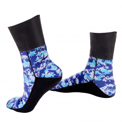 • 3mm high cut, Nylon II Neoprene fin socks in camouflage print for spearfishing